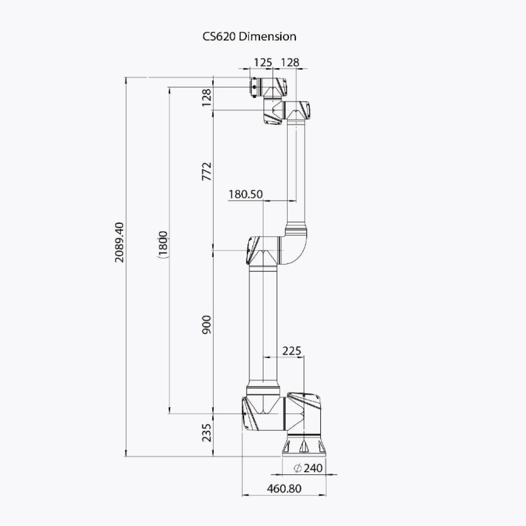 Elite Robots CS620: แขนกลอุตสาหกรรมทรงพลังที่ถูกสร้างมาเพื่องานหนัก ด้วยความสามารถในการยกน้ำหนักบรรทุกสูงสุดถึง 60 กก. และฐานติดตั้งกะทัดรัดเพียง Ø240 มม. ทำให้ประหยัดพื้นที่ได้ มาพร้อมมาตรฐานการป้องกันน้ำและฝุ่น (อัปเกรดเป็น IP68 ได้) เพื่อความทนทานสูงในทุกสภาพแวดล้อม จัดส่งพร้อมสายเคเบิล 5.5 ม. (มีตัวเลือกความยาว 1.5 ม.,3 ม., 8 ม., 10 ม. สำหรับการติดตั้งที่ยืดหยุ่น)